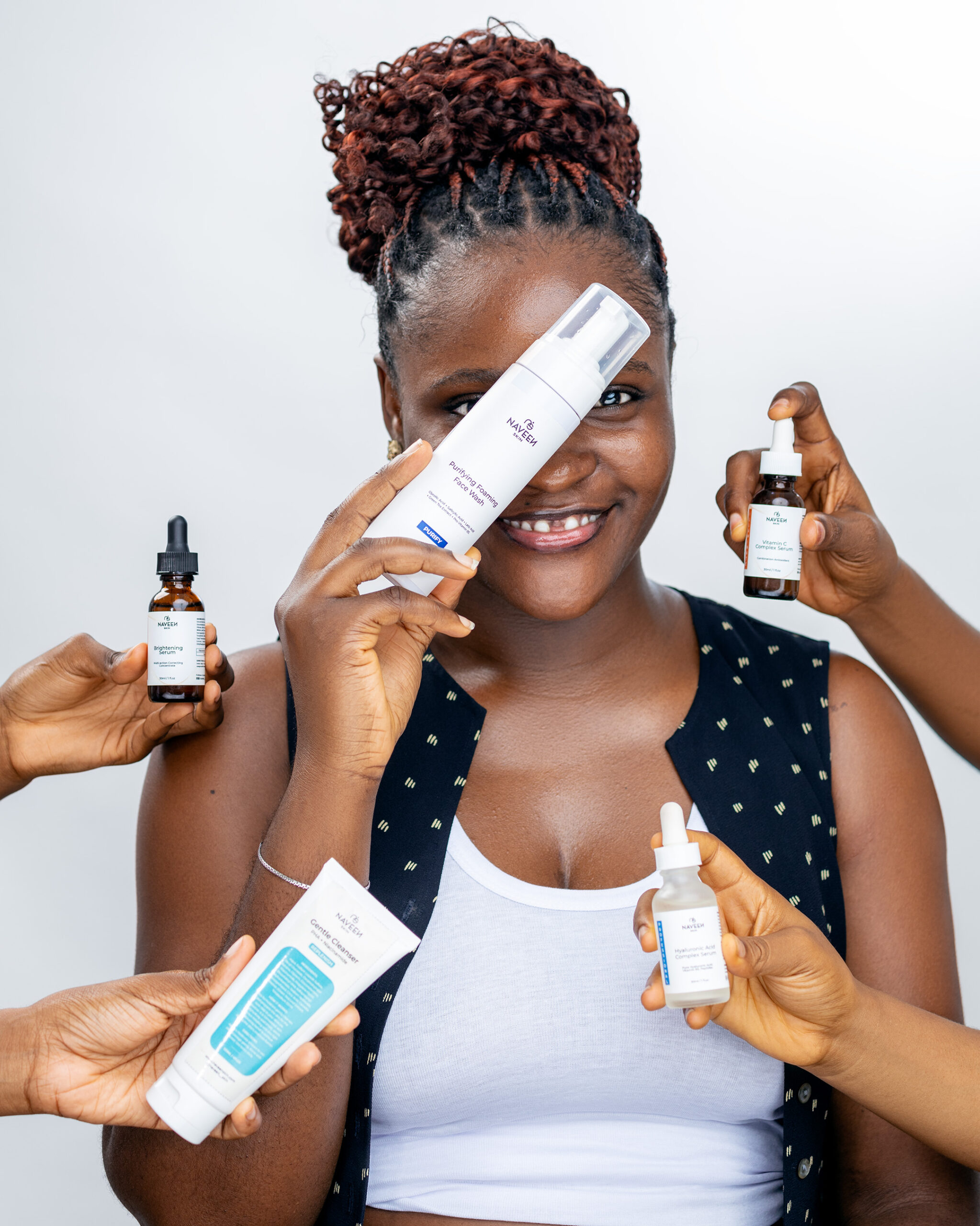 Naveen’s Purifying face wash is the best cleanser for acne prone skin, while our acne serum and azelaic acid clarifying cream also works to control excessive oil production and fight acne.