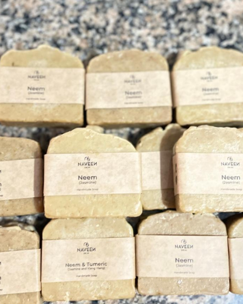 Naveen Neem Bar contains antioxidants and vitamins that reduce wrinkles, fine lines, and dark spots. The goodness of neem protects the skin against environmental stressors. Rich and nourishing. Evens out skin tone and moisturize.