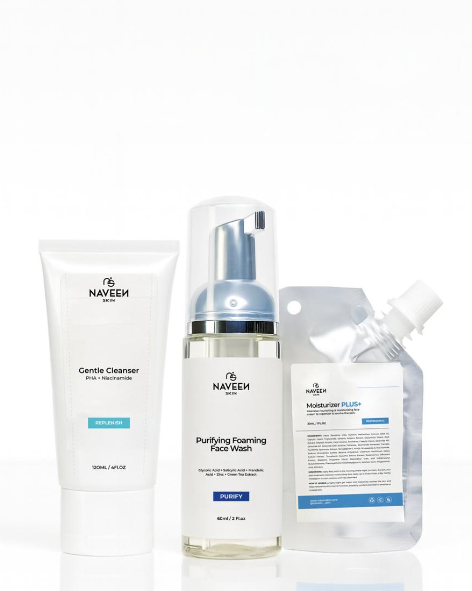 Your everyday glow routine in mini sizes—perfect for students, travellers and skincare lovers on the go. Includes our Purifying Face Wash, Gentle Cleanser and Moisturizer+. Portable, convenient, effective.